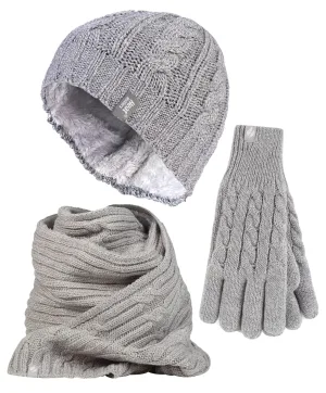 Heat Holders Dames Gebreide Muts Handschoen & Sjaal Set – Lichtgrijs