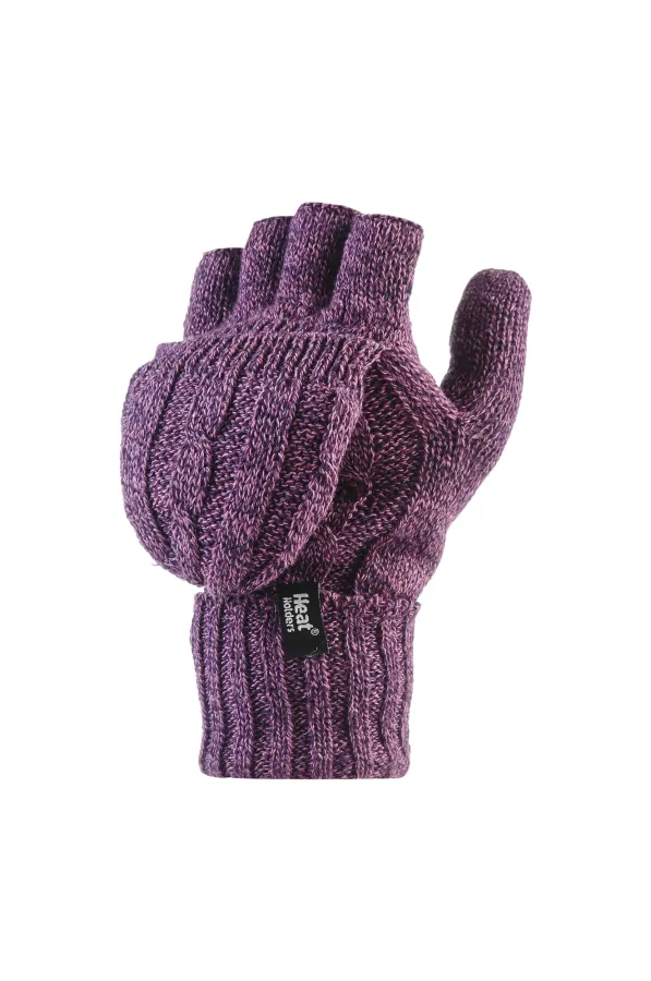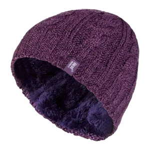 Heat Holders Thermische kabelgebreide wintermuts voor dames – Paars