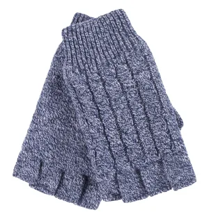 Heat Holders – Kabelgebreide dameshandschoen zonder vingers – Blauwe Merel