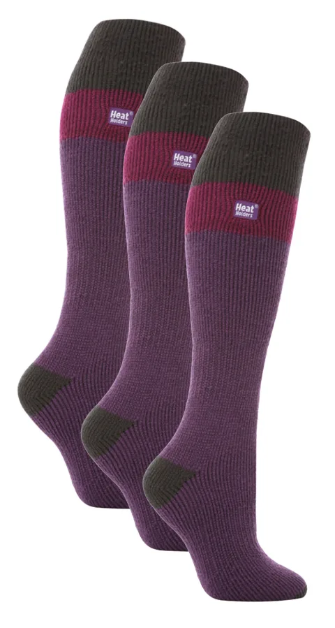 Heat Holders – 3 paar kniehoge skisokken voor dames – Paars / Houtskool