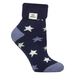Dames Cosy Sokken met Omgeslagen Boord | Heat Holders | Warme Fluffige Lounge Sokken voor de Winter – Marineblauw/Gouden Sterren