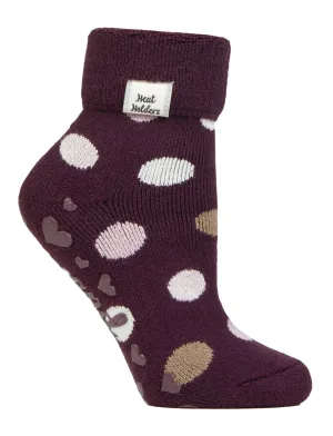 Dames Gezellige Sokken met Omgeslagen Boord | Heat Holders | Warme Fluffy Huissokken voor de Winter – Cabernet Dots