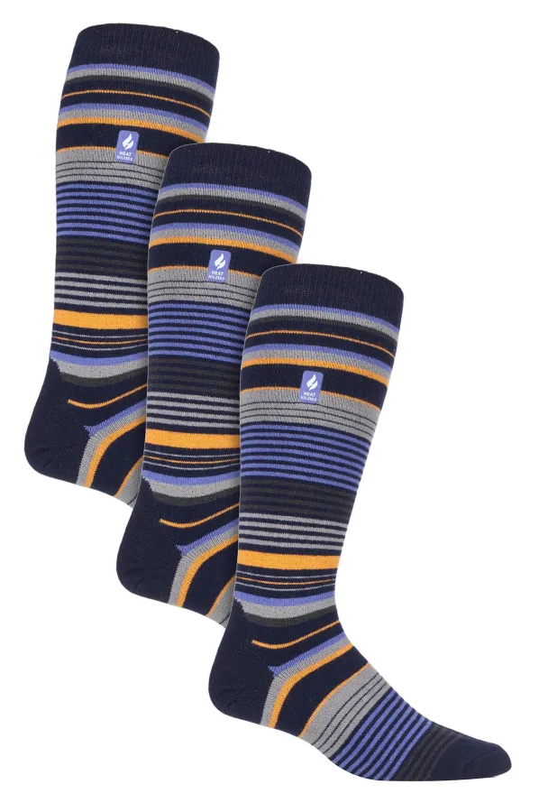Heat Holders – 3 paar Ultra Lite skisokken voor heren – Donkerblauwe Streep