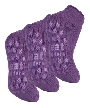 3 Paar Multiverpakking Dames Enkelpantoffelsokken | Heat Holders | Fleece laag uitgesneden pluizige damessokken met grijpers – Lila