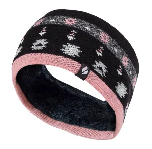 Dames fleece gevoerde thermo oorwarmer hoofdband – Jaquard Zwart Coral