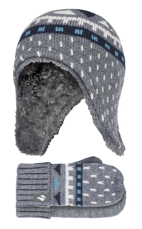 Heat Holders Jongens Nepbont Pom Pom Muts & Wanten – Pebble Melange