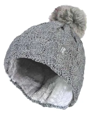 Heat Holders – Thermische pomponhoed voor dames – Lichtgrijs