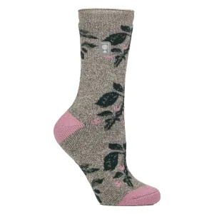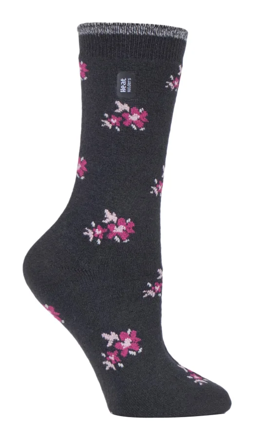Heat Holders Dames Ultra Lite thermo geklede sokken – Houtskool Bloemen (Bellis)