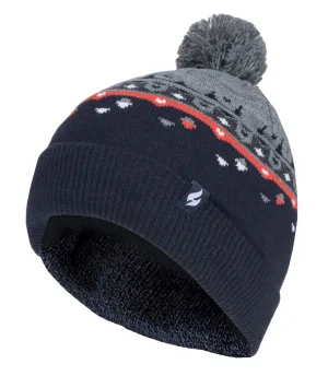 Heat Holders – Geribbelde zachte muts met pom-pom voor jongens – Pebble Melange / red / navy