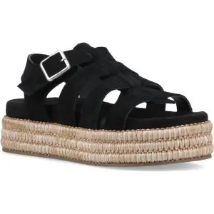 Hush Puppies Rosa Rafia Leren Dames Zwarte Sandalen