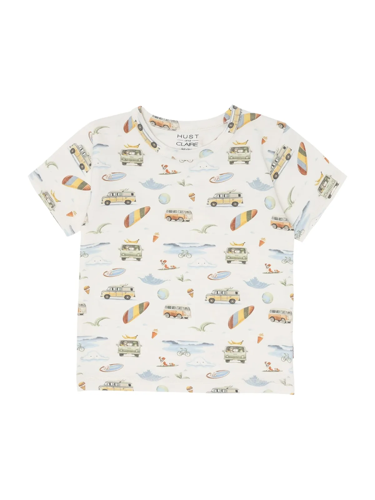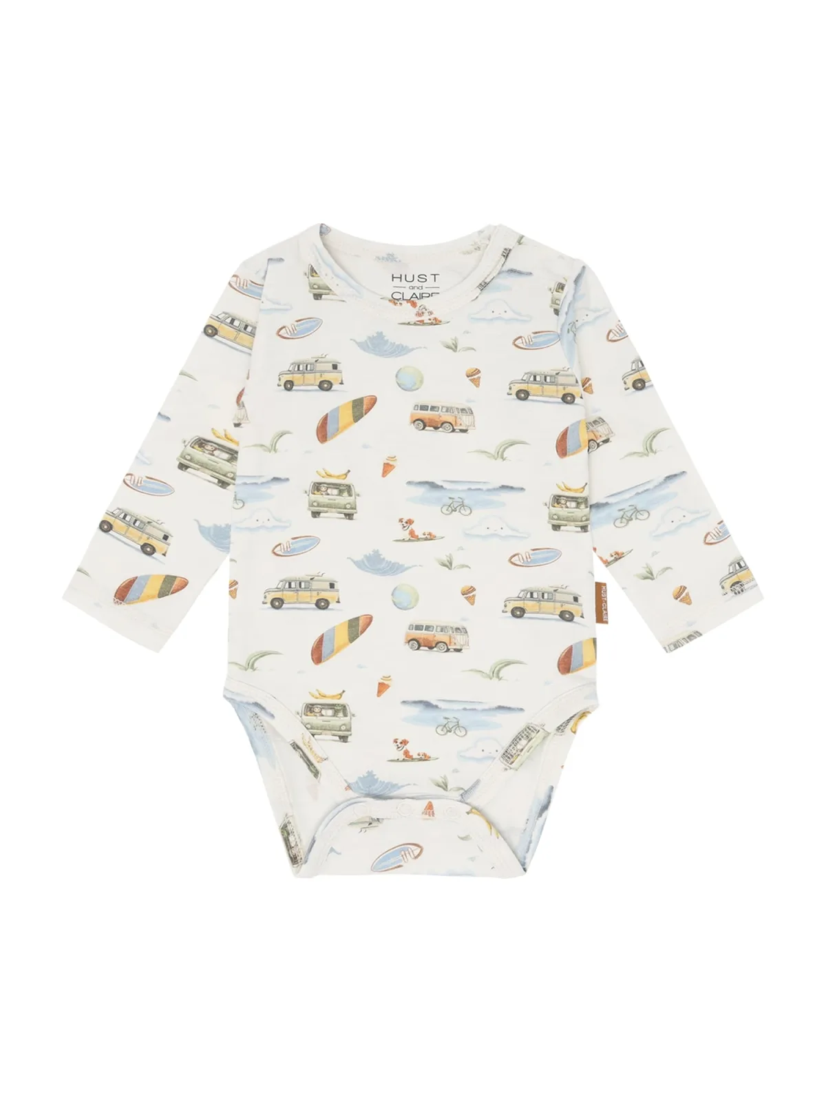 Hust & Claire Rompertje/body ‘Buster Excursion’ ivoor / lichtblauw / riet / lichtoranje