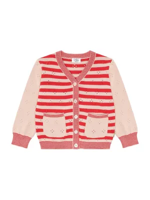 Hust & Claire Gebreid vest ‘Camilla’ beige / rood