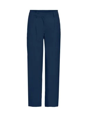 ICHI wide leg regular waist broek donkerblauw