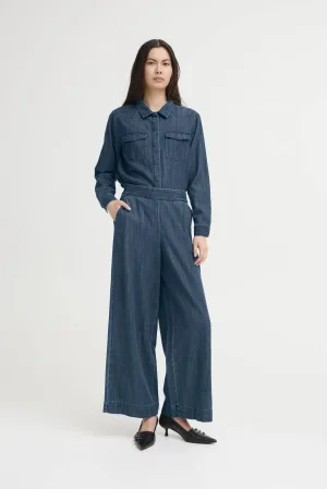 ICHI denim wide leg regular waist casual broek dark blue denim