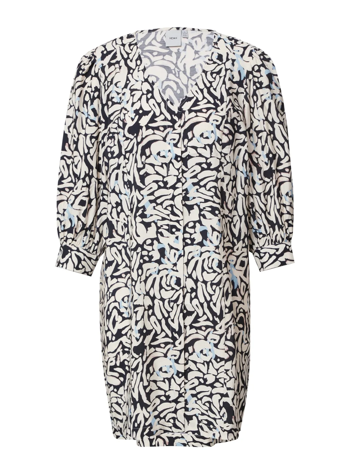 ICHI Jurk ‘Jepia’ lichtblauw / zwart / eierschaal