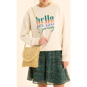 ICode Ecru Sweatshirt With Multicolored Message Ecru