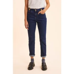 ICode Blue Straight Jeans With Metal Double Heart Loops Dark Blue