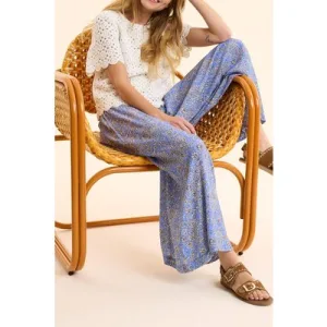ICode Blue Wide-leg Trousers, Paisley Floral Print Blue Ceruleum