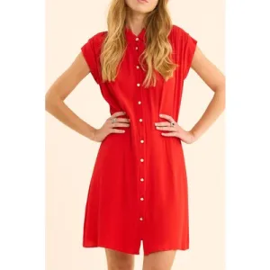 ICode Red Flowing Shirt Dress With Braid Detail Carmine Red