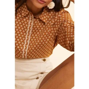 ICode Camel Floral Heart Shirt Ochre