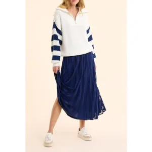 ICode Long Indigo Pleated Skirt With Openwork Stripes Indigo