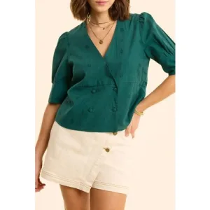 ICode Green Top Embroidery Anglaise Double-breasted Buttoning Gree