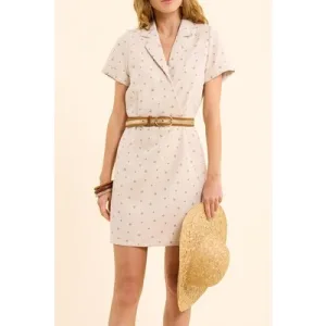 ICode Ecru Micro Flower Print Dress Ecru