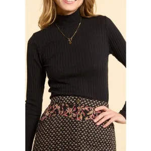 ICode Black Funnel Neck T-shirt With Ribbed Stripes Black