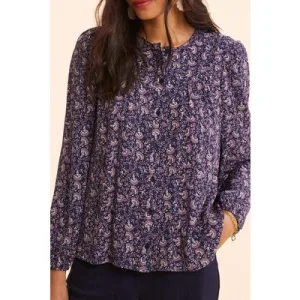 ICode Navy Blouse With Rock Floral Print Marine