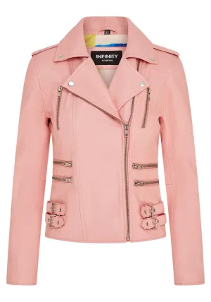 Dames Baby Roze Classic Brando Biker Leren Jas – Soweto