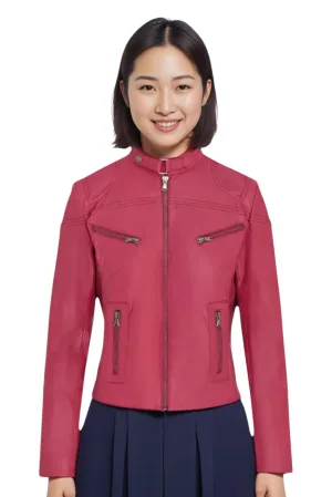 Roze casual slim-fit leren bikerjack voor dames – Tulsa