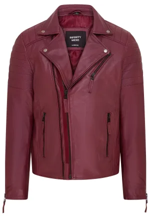 Heren bordeaux brando leren bikerjack met dubbele kruisrits – Fagernes
