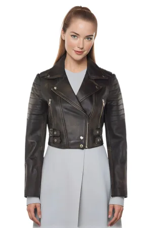 Dames bijgesneden Brando leren bikerjack-Damascus