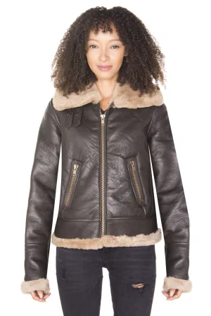 Dames bruin B3 schapenvachtleer vliegend jack-Kayseri