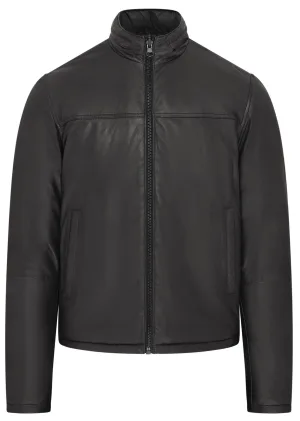 Zwart omkeerbaar leren bomberjack voor heren – Raufoss