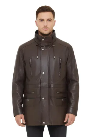 Heren bruine zachte Italiaanse leren parka jas-Gatton