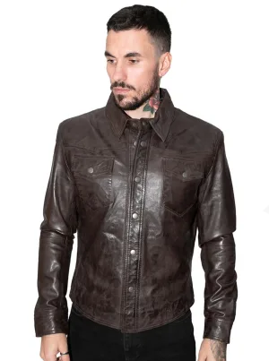 Bruine vintage trench-stijl Crombie leren jas voor heren-Macau