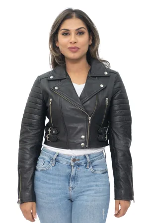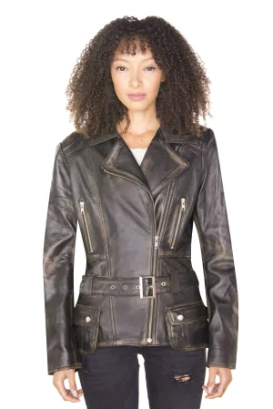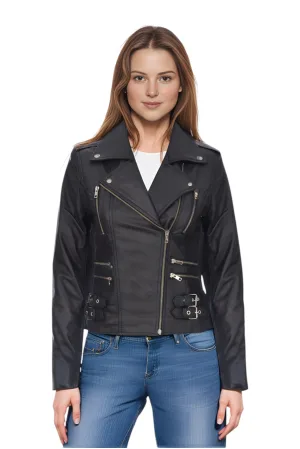 Dames zwarte klassieke Brando biker leren jas – Soweto