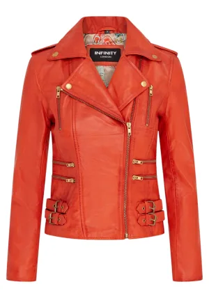 Dames bijgesneden Brando leren bikerjack-Damascus