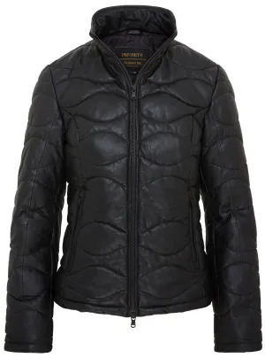 Dames Zwarte Puffer Quilted Bomber Leren Jas – Hamar