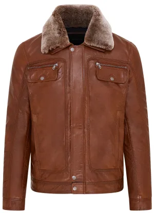 Heren Tan Trucker Shirt Leren Jack – Tornio