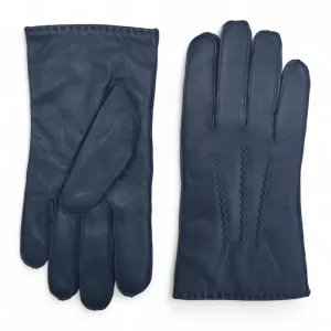 Heren marineblauwe Italiaanse leren warme wollen voering wintersteekontwerp rij- en casual handschoenen