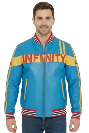 Heren blauw leren Track Racing Moto Bomber Bikerjack – Racer