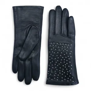 Zwarte Italiaanse leren winterhandschoenen met zachte wollen voering en studs voor dames