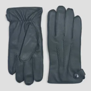 Heren marineblauwe Italiaanse leren warme wollen voering winterrijhandschoenen voor casual rijden
