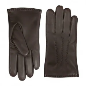 Herenhandschoenen van bruin Italiaans leer met warme wollen voering en wintersteekmotief voor rijden en casual rijden