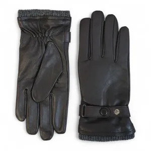 Herenhandschoenen van zwart Italiaans leer met warme wollen voering voor winterfietsen en casual rijden