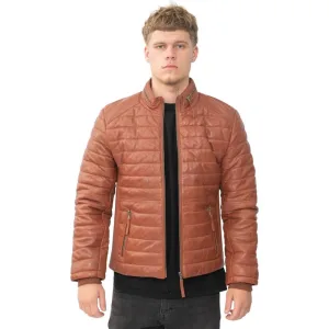 Bruin gewatteerd leren pufferjack voor heren – Tallinn