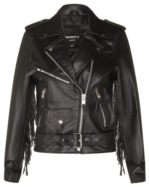 Zwart dames bikerjack met franjes en kwastjes – Sevilla