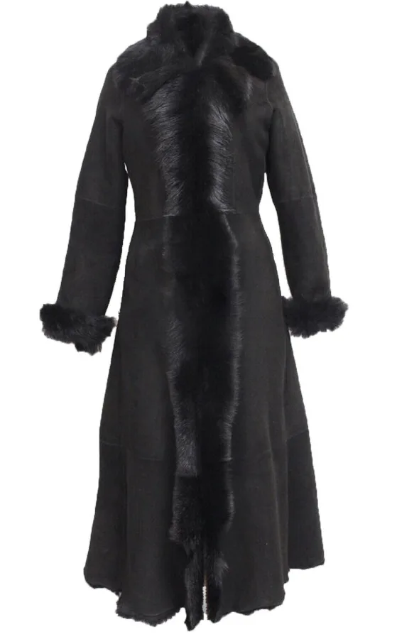 Dames zwarte suède Toscana schapenvacht trenchcoat-Rushden